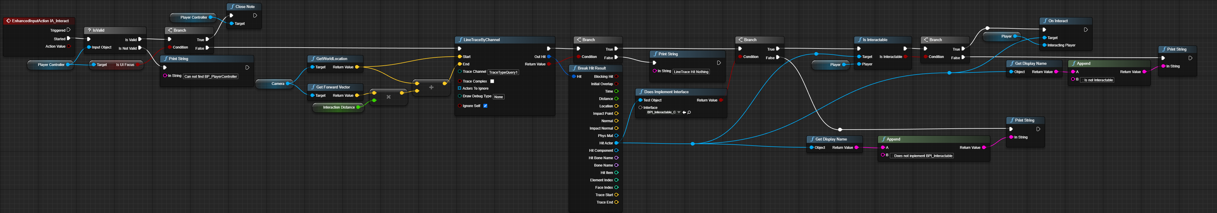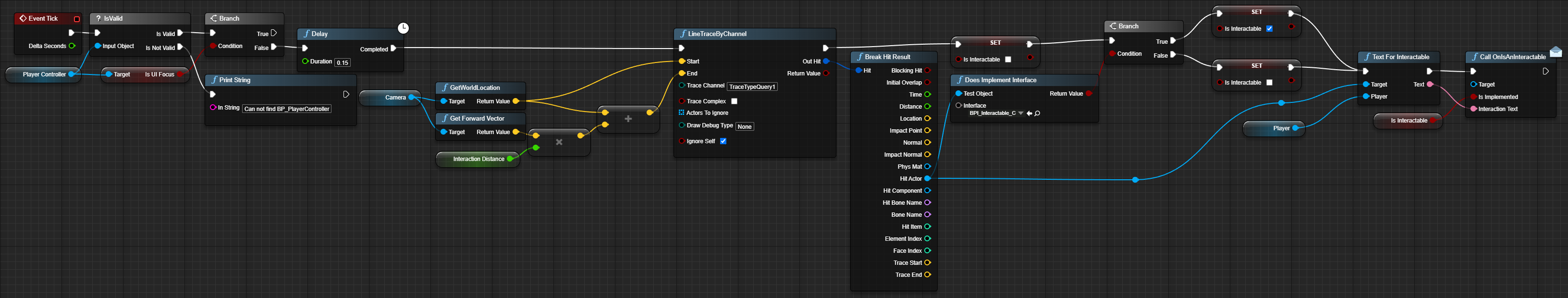 Another responsibility I had was to implement the interaction system where you can press F to interact with sertain objects. Additionaly when a player hovers over an interactable it will show for what that interaction may do with an UI element.
